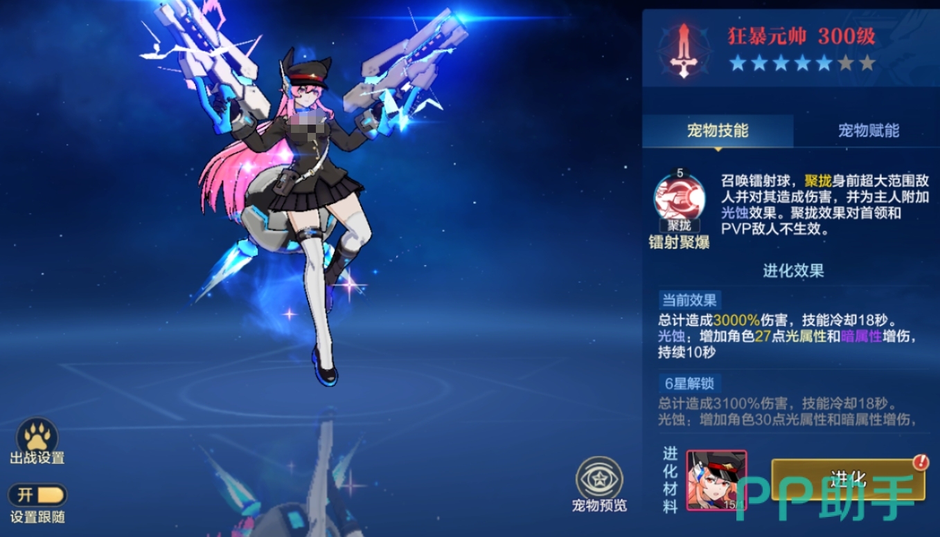 光暗双修流派的核心辅助宠。技能不仅提供光、暗属性伤害加成,还能对命中的敌人施加光、暗抗性削弱效果,实现“增伤+减抗”双重压制。当与狂暴元帅协同出战时,可同时激活光暗增伤与敌方光暗抗性下降两层增益,最大化光暗系角色的综合输出转化率。