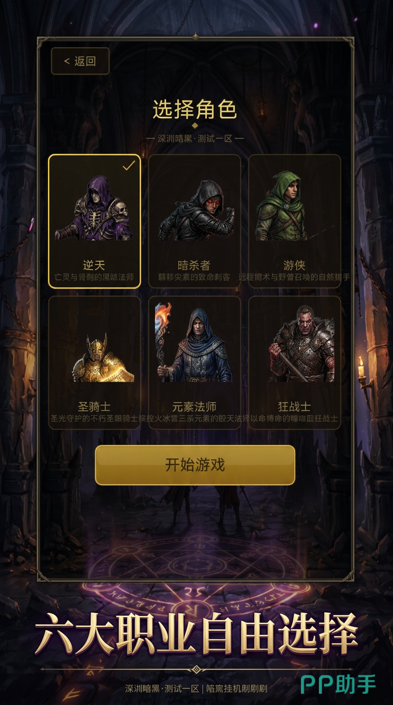 区别于传统暗黑类作品强调操作与策略配合的设计逻辑,本作通过底层自动化系统实现战斗、拾取、转职、技能释放、副本挑战等全流程托管。玩家创建角色后,仅需一键启用挂机模式,角色即自动寻路、智能选怪、精准拾取战利品,并实时完成装备强化、符文镶嵌、属性重铸等养成环节。职业体系涵盖狂战士、圣骑士、死灵法师等经典定位,其中狂战士以高爆发近战为核心,具备冲锋突进、范围震击与持续流血等标志性技能组合,契合追求爽快打击感的用户偏好。