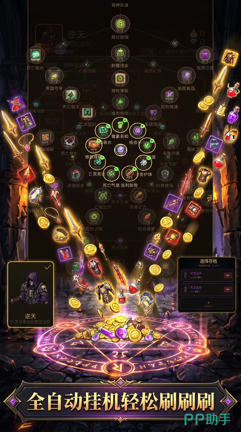 暗黑挂机刷刷刷手游以正统暗黑美学为视觉基底,融合深度自动化的游戏机制,打造出一款真正“解放双手”的轻量化ARPG体验。玩家无需反复点击、手动走位或复杂操作,即可全程享受刷怪清图、装备掉落、角色成长等核心乐趣,兼顾沉浸感与休闲性。