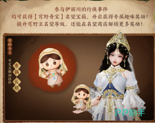 伊丽川主题外观系列正式实装,包含三款高还原度功能性道具:以弓月圣女为灵感设计的腰挂、跟宠娃娃及弯弓背挂,整体呈现庄重肃穆的祭祀美学;蓑衣披风与斗笠头饰取材自草原牧民生活图景,质朴中见考究;马具套装亦同步上线,风格统一,适配大漠驰骋场景。