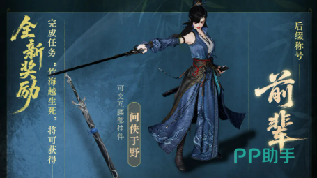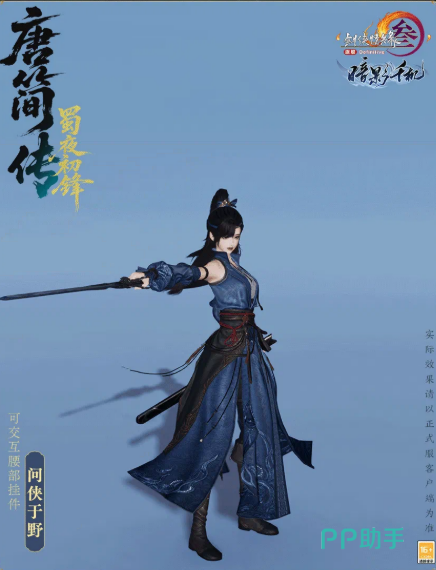 完成指定唐简传任务后,可获得可交互腰挂“问侠于野”及后缀称号“前辈”。该腰挂所承载之剑由唐仲玄亲手锻制,设定为蜀道护送期间的重要信物。同系列腰挂“金锁冰璃”亦同步推出,壶身呈冰蓝色调,饰以鎏金锁纹,触发交互时呈现旋身拔剑、衣袂扬起、剑锋横指的经典动态,高度呼应剧情核心意象。