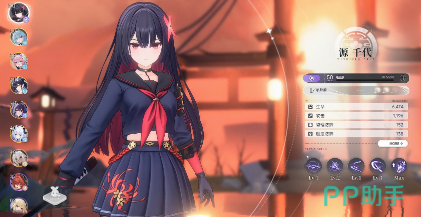 新手阶段建议优先培养源千代。作为暗系核心输出,她拥有五段式连击体系,可通过持续叠加“鬼火”状态强化重击蓄力效率。当目标处于燃烧状态时,其重击充能时间缩短,且暗系技能可同步触发物理范围伤害;后期高频使用重击时,伤害倍率进一步提升,形成兼具爆发与持续压制力的输出循环。