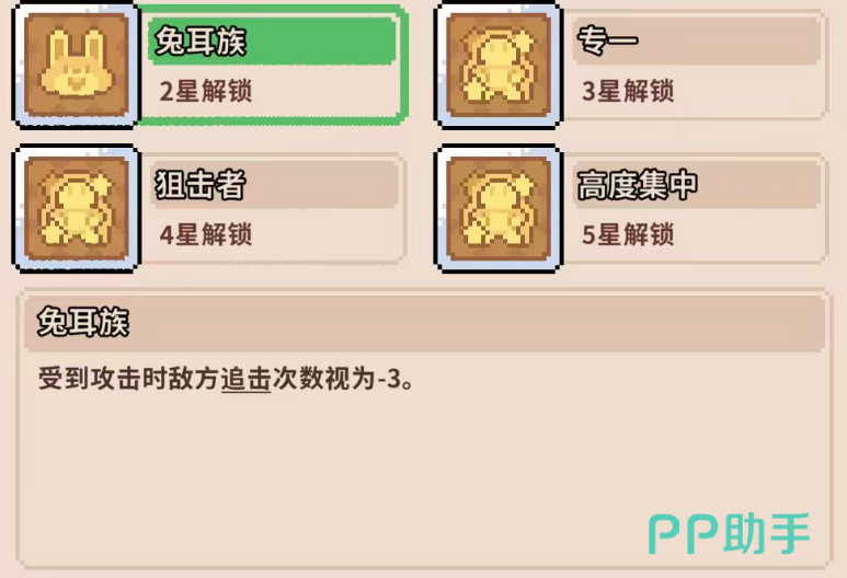 普攻机制兼顾功能性:默认优先攻击前排单位,虽仅造成1点基础伤害,但可在前排承伤压力较大时提供微量补刀或干扰;二星解锁天赋“兔耳族”,使敌方每次成功命中她后,其后续追击次数永久减少3次——对依赖多段追击的敌方阵容(如连击流、反击流)具备显著反制价值。