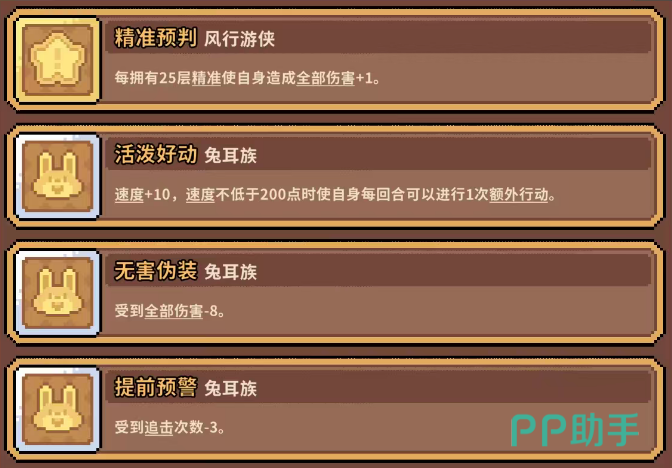 天赋选择需严格匹配其机制:最优橙色天赋“精准预判”要求25层精准度激活,触发后每次攻击额外+1点伤害,与技能体系深度耦合;若未获取该天赋,可选用“活泼好动”(速度+10,且速度≥200时每回合额外行动1次)、“无害伪装”或“提前预警”等替代方案,以强化生存、机动或技能释放频率,间接支撑精准层数的快速叠加上限。