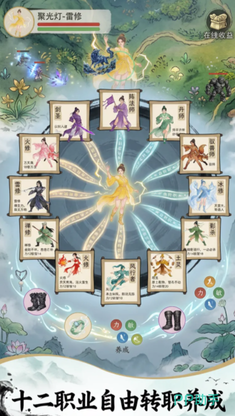 游戏内共设数十种初始职业,各职业基础属性、成长曲线与专属技能树均不相同。新手阶段可自由选定入门方向,中后期支持转职系统,允许玩家依据当前资源储备与战略需求调整职业定位。修仙过程中将获得海量装备,每件装备附带唯一属性增益效果;所有装备支持重复刷取与合成升级,高等级装备需通过多阶合成达成。建议玩家主动探索全地图区域,参与野外怪物清剿任务,以此加速修为等级提升进程。
