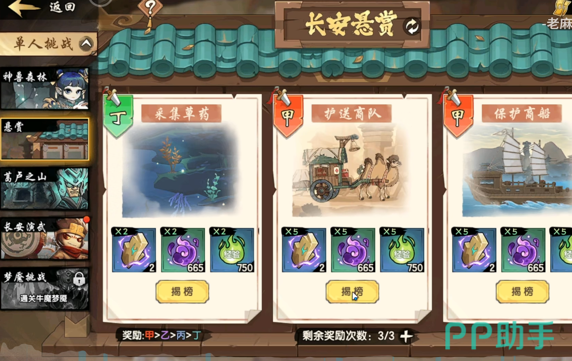 在《造梦西游之黎尤浩劫篇》中,悬赏任务是玩家获取高价值资源的核心日常玩法之一。该系统采用周期性开放机制,每周限接3次,任务内容随机生成且按难度划分为甲、乙、丙、丁四个等级——其中甲级任务奖励最为丰厚,涵盖稀有装备材料、大量金币及进阶符文;丁级则奖励基础,通常仅提供少量经验与低阶道具。建议新手优先挑战甲级悬赏,若初次尝试失败,可利用每日3次免费刷新机会重新匹配任务目标。