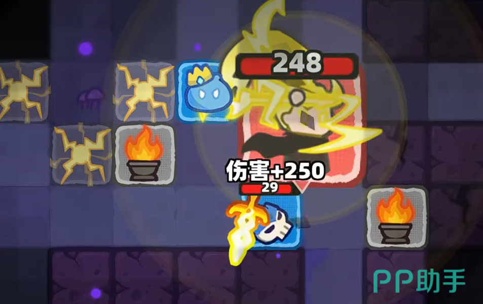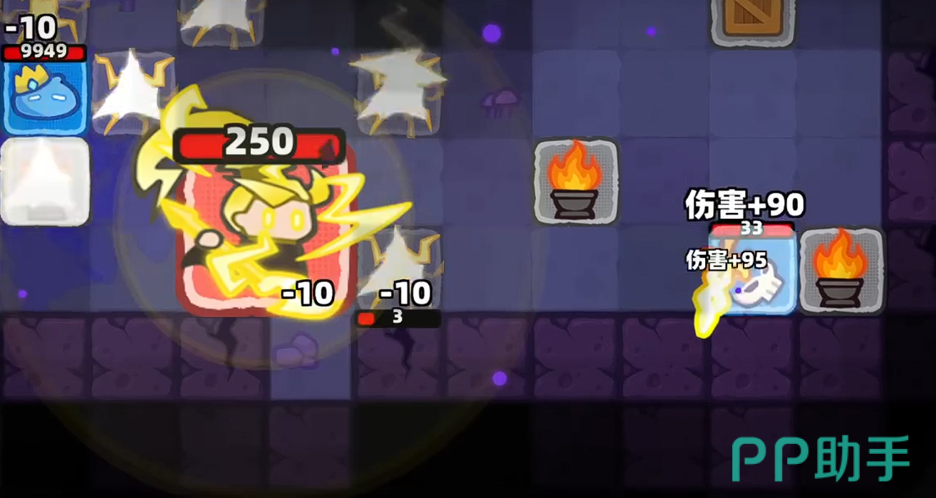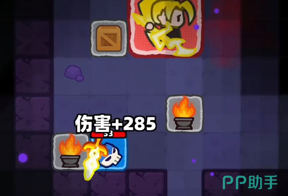 开局阶段,Boss尚未激活远程技能,主要采用贴身挥砍攻击。此时无需频繁位移,推荐静止于带火炬标识的格子上——此类地形提供全视角视野,可清晰预判Boss转向与起手动作,大幅降低被背身连击的风险。持续普攻可逐步叠加角色基础战力,实现稳定压血。