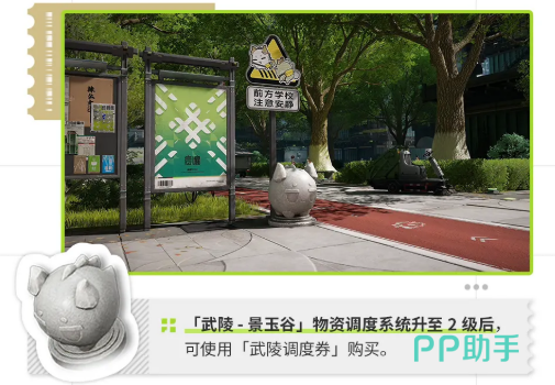 「龙泡泡石墩」则来自武陵景玉谷,仅需将该区域物资调度系统提升至2级,即可凭武陵调度券兑换,获取条件相对宽松。