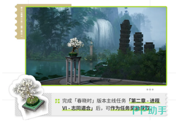 「山槁小景」为剧情向奖励,通关「春晓时」版本主线第二章进程VI任务「志同道合」后自动获得,无需额外刷取;