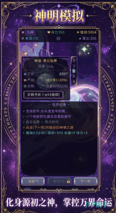 《神明模拟:我于万界之上》是一款突破传统框架的高自由度神系构建类手游。玩家不再局限于单一世界观,而是以“万物本源之神”的身份,立于诸天万界之巅,亲手规划、演化并统御多个动态演进的位面文明。游戏尚未公布正式上线日期,但已开启全平台预约,吸引大量策略向与模拟经营爱好者关注。