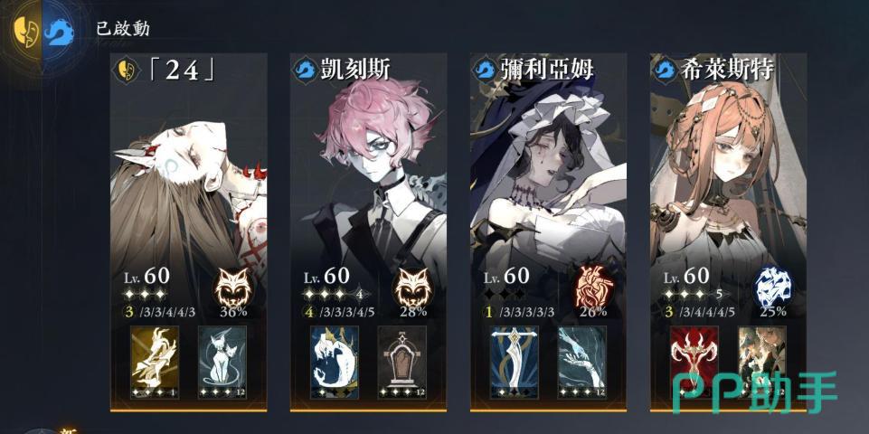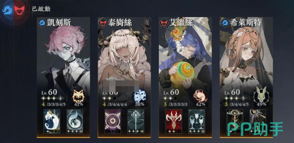 另一套成熟体系为“24+羊妈泰绮丝”。其中羊妈(泰绮丝)定位为机制型万能辅助,2启即可生效,核心能力包括狂气回复、大招复制凯刻斯2费反击牌、施加虚弱与易伤状态。典型配队如凯刻斯+羊妈+艾继丝+希莱斯特,通过繁育技能大量生成反击牌,再由羊妈大招实现批量复制,形成高效输出循环。该体系虽对算力略有需求,但成型后稳定性极高,第八章起即可稳定打出极夜薇光开局,从牌库中0费拉取凯刻斯觉醒或希莱斯特,配合三菲增益与繁育buff快速叠层,后续策略灵活度高。