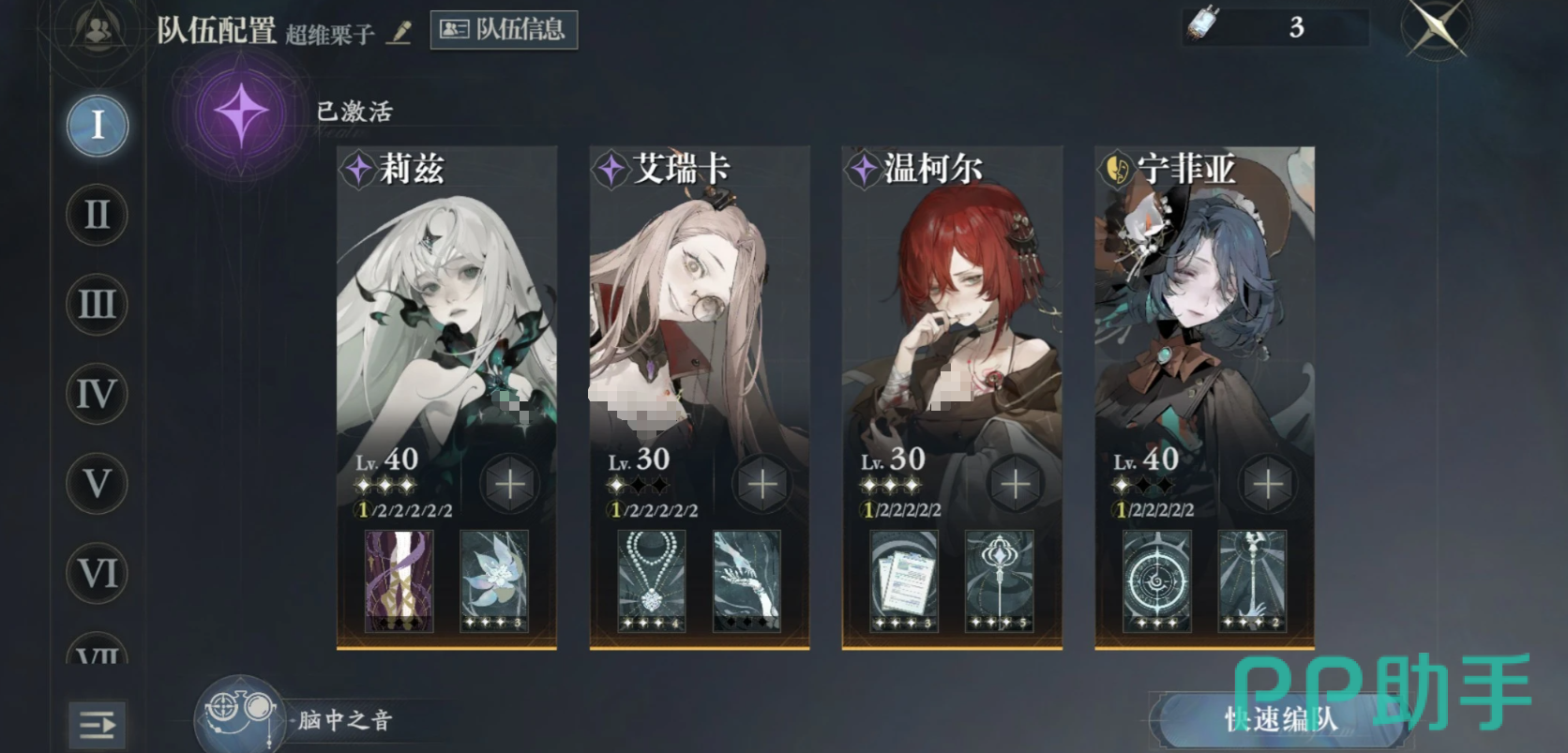 旺达为不可替代的核心输出位,其反伤效果稳定转化为毒属性伤害,第1次与第3次启灵均带来实质性战力跃升;满启灵后更兼具机制完整性与操作流畅性双重优势。诺蒂拉作为优质副C兼辅助,首命即可提供可观功能性,若暂未获取,可临时替换为艾尔瓦;在生存保障充分的前提下,卡西亚亦可承担过牌调度职责。