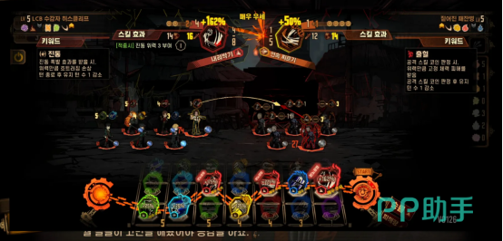 角色系统深度结合卡牌机制:初始可调度12名罪人,但每场战斗仅能编入5人主力阵容,其余角色作为支援单位参与战局。每位角色拥有专属技能卡组,战斗中随机浮现技能卡牌,玩家需依据战场形势即时决策,完成高策略性的卡牌选取与组合运用。