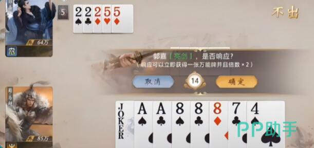 关羽与郭嘉的搭配,则构成高效手牌重构闭环:当对手打出顺子时,关羽触发偷牌;郭嘉在满足“出牌数=剩余手牌数”条件时重置手牌,快速清理冗余牌张,加速成型速度。此外,“名马”系统具备战局导向能力——不同战马适配差异化打法路径,需根据当前阵容与对手配置动态选择;而“亮剑”机制的触发阈值明确为:手牌数量低于10张且已握有成型爆发组合时,方可启动,盲目开启将导致防御空档。