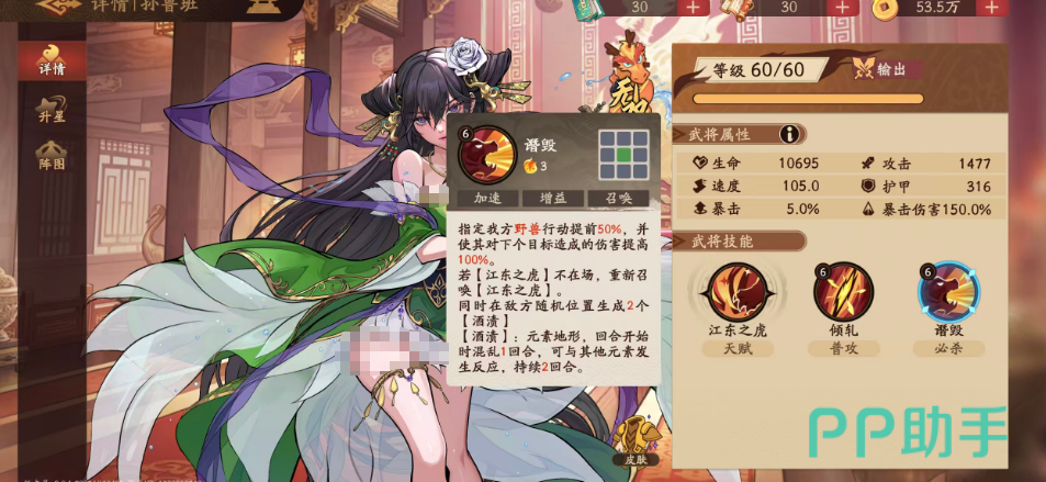 “酒渍”属于独立元素类状态,在敌方每回合开始时触发混乱效果,虽仅持续1回合,但与其他控制或减益效果联动时,可大幅削弱敌方行动稳定性。该机制使其在前期具备快速控场能力,配合“江东之虎”的即时召唤,形成“控→召→打”三位一体的战术循环。中后期若需优化输出结构,应重点强化孙鲁班的速度属性——因其多数关键功能均依赖“江东之虎”的稳定在场与及时响应,而速度直接决定控制链启动效率与召唤节奏把控精度。