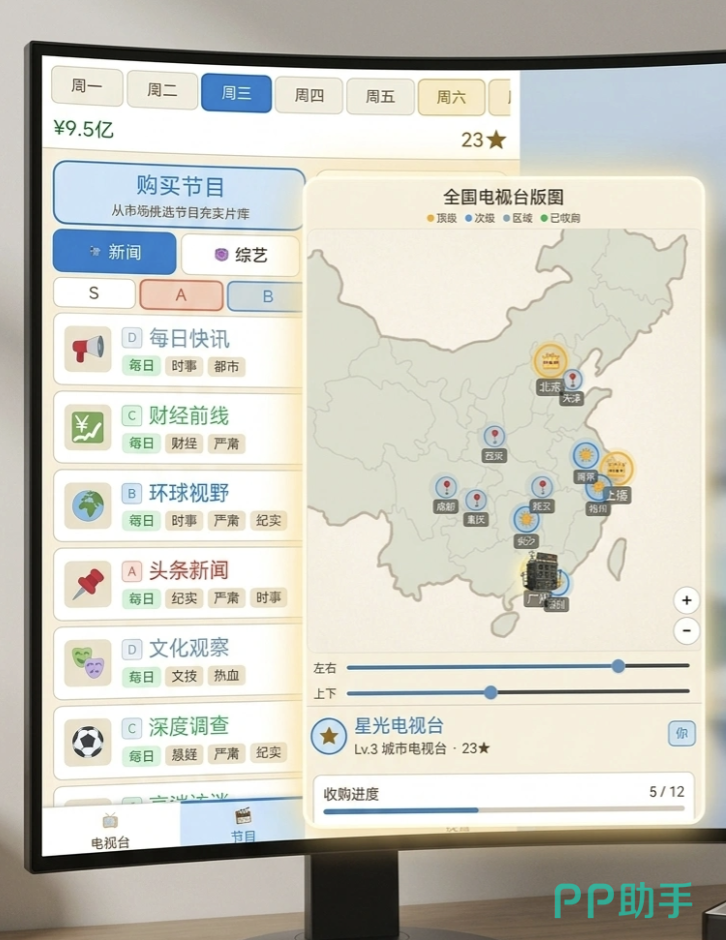 电视台模拟手游是否值得一试?不少玩家在观看了官方发布的宣传视频后,产生了浓厚兴趣。这款游戏跳脱了传统模拟经营类游戏“点击—等待—重复”的单调模式,以真实传媒行业为蓝本,构建了一个动态演进的媒体生态。玩家将从一家收视率长期垫底、设备老旧、团队涣散的地方电台起步,凭借对内容趋势的敏锐判断、节目编排的科学逻辑与资源调度的全局思维,逐步实现逆袭,最终执掌覆盖多平台、多业态的现代传媒集团。