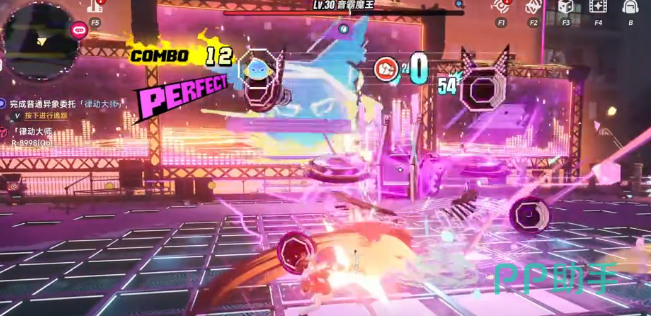 本场战斗采用音律驱动型操作机制。战斗界面顶部实时显示动态指令条,包含三类基础响应:闪避、普攻、跳跃,每类动作均与节拍强弱同步。精准执行指令将累积连击数,连击值直接转化为伤害倍率加成;实测数据显示,当连击数稳定维持在20次以上时,单次技能输出提升显著,Boss血量削减效率明显加快。