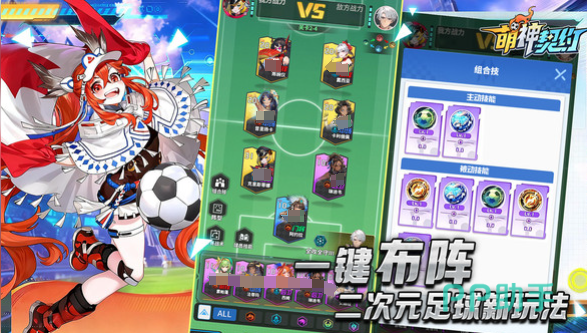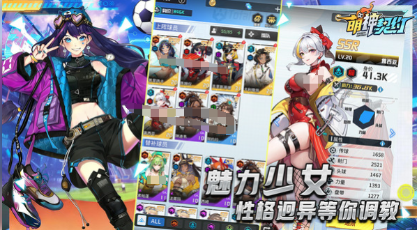 游戏比较亮眼的就是二次元加上q版的双重美术风格,视觉体验是比较出色的。每一个美少女都会拥有专属的精致立绘,服装设计也会比较细腻,而且也很有辨识度。从发型到配饰都会有浓浓的二次元风情,有一些甜美可爱,有一些会有御姐范。另外还会有炫酷的全屏动画特效,足球和二次元碰撞之后就会形成一个超动态的视觉冲击力,让每一场比赛都好像是在看热血动画一样。