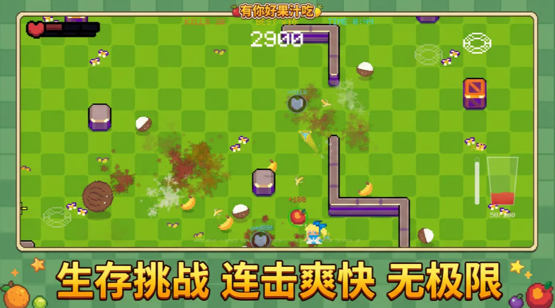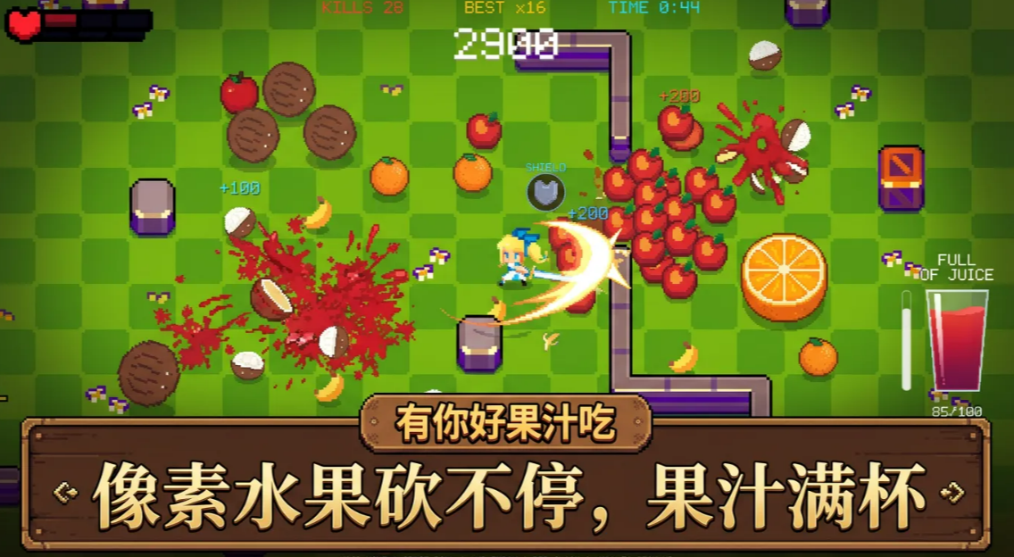 这游戏属于Roguelike类型,但跟那些硬核的不太一样。上手特别简单,没有那种长篇大论的新手教程,点开就能直接开打。很多参加过测试的玩家都说,玩着玩着就停不下来,总想着再来一局。画面方面确实做得挺用心,像素风配上漫画分镜的感觉,再加上打碎水果时,那种果汁四溅的效果,视觉冲击力还是挺强的。游戏里的敌人都是水果变的,没有那种吓人的怪物Boss,所以玩起来压力不会太大,整体氛围比较轻松。
