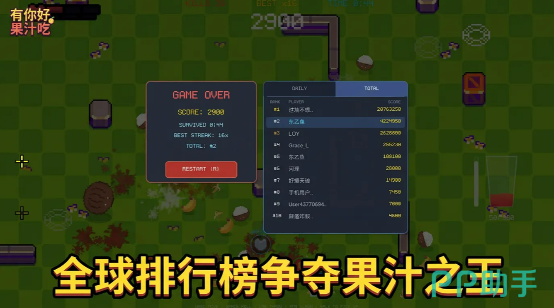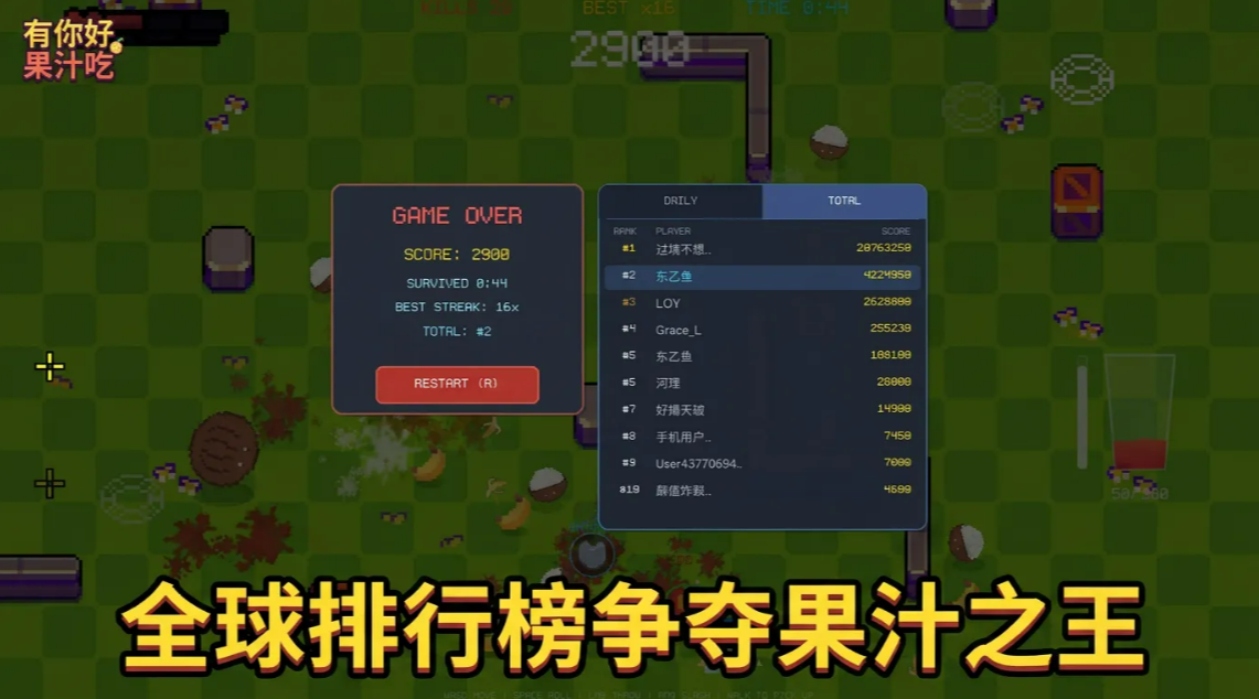 关于有你好果汁吃手游下载预约的方式,前面已经说得比较清楚了。游戏现在还在测试阶段,估计过不了多久就会正式上线。玩家在游戏里扮演的是果汁战士,目标就是拿下"果汁之王"的称号,体验那种割草式清屏的快感。想了解更多游戏资讯的话,可以去豌豆荚关注一下官方动态,后续应该会有更多更新消息放出来。