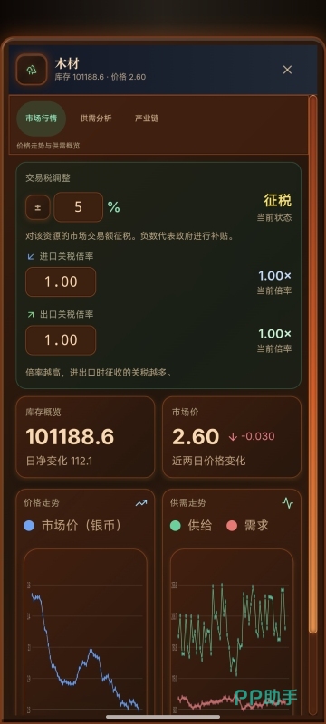 游戏就会给大家复制真实市场的经济动态逻辑,告别以往的简单套路。在这里没有固定的物价,粮食丰收就会导致粮价暴跌,铜矿短缺就会引起铜价疯涨。20多种资源就会环环相扣,一条产业链的波动就有可能会引起全国连锁反应。你所需要做的就是一直盯着供需曲线判断什么时候囤货,什么时候抛售。平衡生产和贸易是比较重要的,毕竟一次错误的经济决策就有可能会导致帝国一夜崩盘。