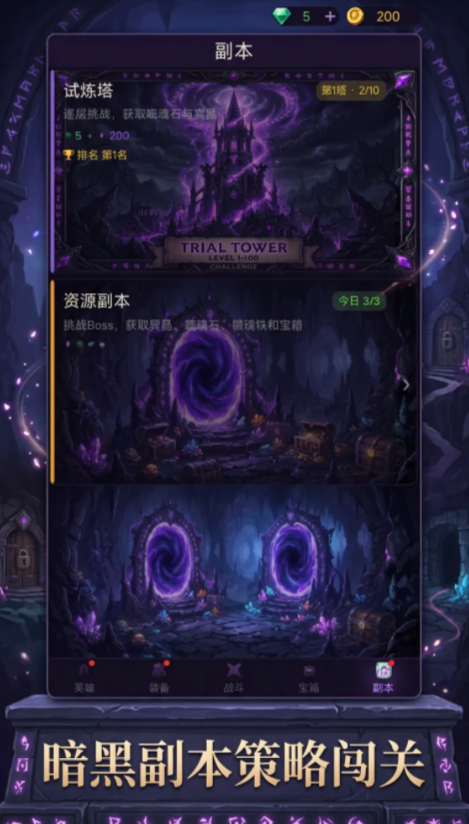 在副本挑战过程中会设置更多不同的场景地图,敌人的特性也会有所变化,玩家可以根据实际情况选择英雄放置防御塔,根据不同的进攻路线释放技能,合理分配英雄资源,确保在关键时刻扭转战局,完成对战之后玩家会获取丰富的资源,不管是喜欢策略对战还是英雄养成的成员,都可以加入到游戏中,众多不同的暗黑场景,等待玩家来挑战。