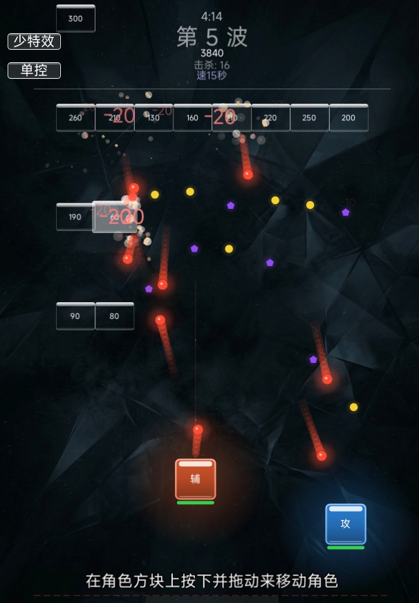 不过,要想将砖块消灭可不是那么容易的事情,每块砖块上都会标注有对应的数字作为它们的血量,玩家们需使用方块角色不断地发射弹球对这些砖块进行攻击,只有将它们身上的数字清到零后,才能彻底将它们消除。清理过程中,部分砖块也不会坐以待毙,它们同样会对方块角色发动攻击,若方块角色的血量被清空则被视为被击败,闯关过程中所获得的一些道具也会随之掉落,所以玩家若是觉得敌人有些难以对付,可直接通过撤离区离开关卡,确保所得的战利品不会丢失。