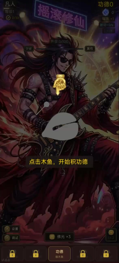 这游戏核心就一个字:敲。扮演一个修仙杀孽太重的大佬,浑身煞气快把自己憋炸了,咋办?敲木鱼呗。屏幕上点个没完,功德+1往上跳,煞气慢慢就散了。听起来单调?还真不是。它把放置挂机塞进去了,你就算把手机扔一边,修为也在涨,功德也在攒,回来一看数据涨了一大截,白嫖的爽感很到位。而且它不是无脑点,后面解锁的东西不少,各种加成、提速、自动敲击的道具慢慢都出来了,越玩越有点策略性。你前期手动敲,中期搞自动化,后期看着数字疯狂翻滚,成长曲线挺舒服。关键是这功德不是摆设,是真能消煞气涨修为,玩起来有目标感。