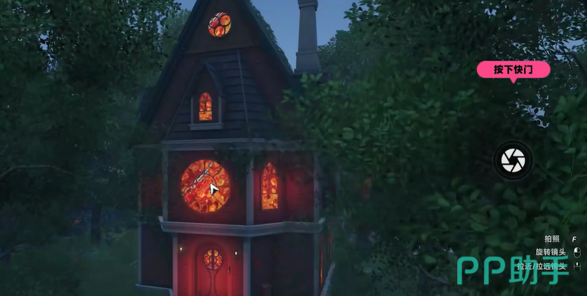 战斗结束后继续沿小地图右侧路径前进,并召唤载具“小摩托”沿主路行驶,不久将抵达一座木质结构桥梁。注意桥体左侧栖息有一只乌鸦,互动后可拾取道具。随后前往一处泛有微光的神秘屋舍,其门前即设有打卡点,靠近并执行拍照动作即可确认完成。