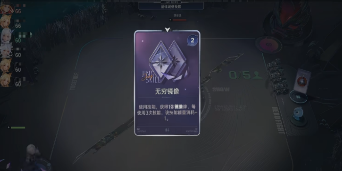 首先让玩家们需要了解的是这个角色的能力,镜的能力战略价值是相当大的,只要了解好其中的逻辑和节奏,能带来的收益非常可观,而镜的一手无穷镜象就是打出节奏的核心,在战斗中玩家们需要消耗能量,生成一张镜像牌,将这张镜像牌打出后会自动变成玩家们上一张使用的角色卡,这一强势点就在于玩家们可以大大降低获取角色的成本,并且加速获取一些比较关键的英雄,加强的技能自然也有着一定的限制,只能和使用时间最近的英雄进行复制,并且不能够从已经生成的镜像再次生成,变成别的英雄,这也让很多玩家们玩的更加开心,因为既有了强度也有了限制,可玩性大大增强。