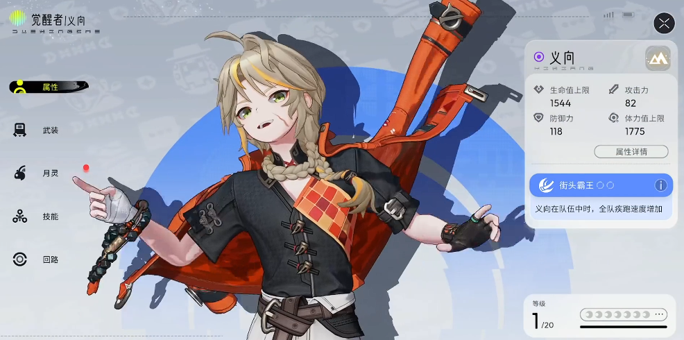 那么第三为大家介绍的就是义向,义向在游戏当中其实是身份比较高的一个角色,土系里面的功能效果,他带来的爆发输出是更强势一些的,而且他也更适合参与各种近战输出,因为自身是一个野盗的身份,所以在武器效果当中经常是拿着一根长棍进行攻击,对于敌人来说,他的连招效果当中用的好,就可以带来快速连击进行叠加输出的效果,但是因为他自身的防御数值是比较脆的,所以如果被对面机动性比较高的敌人给抓住的话,那么这里一定要注意快速的闪避,闪避成功的话后期还有很多的功能可以用,如果闪避不成功的话,在这里尽量不要被敌人一套给带走,所以他也需要一定的护盾加成效果,才可以有足够的生存强度,技能效果当中因为他自身也有一定的突进功能,在多段的突进连续使用的情况下,比较容易进入敌人的包围圈之中,所以大家还要学会用他的浮空技能以及终极大招,带来单体作战的强度效果才可以保证他在这里的输出强度。