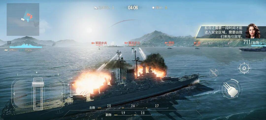 说完搭配再说说这游戏的第特色,TPS+策略双核玩法。听着挺唬人的是吧?其实就是战斗分成两个阶段。先遣阶段你自己上手操控一艘战舰,躲炮弹、瞄弱点、主炮一发给对面殉爆,手感和正经射击游戏没差。等先遣舰跟主力汇合之后,就切到决战阶段了,这时候整支舰队列阵开打,你得指挥航母放舰载机、手动甩指挥官技能,玩的就是宏观布局加微观操作。说白了手残党不至于被虐得太惨,硬核玩家也能找到操作空间,这年头海战手游能做成这样的真不多。
