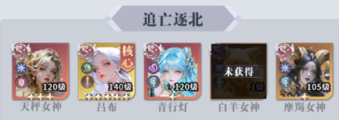 首先给大家推荐的第一个阵容是一个追亡逐北队,这个搭配里面大家可以用到的核心就是吕布,吕布这个角色大家是不是经常看到,她确实在这里作为一个五星的角色,强度能够给她带来非常强的单体攻击,所以很多情况下吕布都是放在主要阵容当中进行使用的,在这里通过她的功能,可以保证我方在输出效果当中并不拉,而另外可以给她搭配成员有天秤女神、青行灯、白羊女神以及摩羯女神,这几个角色相对来说星级都是比较低的,所以前几天玩这个追亡逐北队的成功概率还是比较大的,至少在成型的速度上面,除了吕布不好拿以外,其他的角色都比较好拿,虽然都是S+品质的角色,但是其他几个角色相对来说获取难度上面也没有那么高。