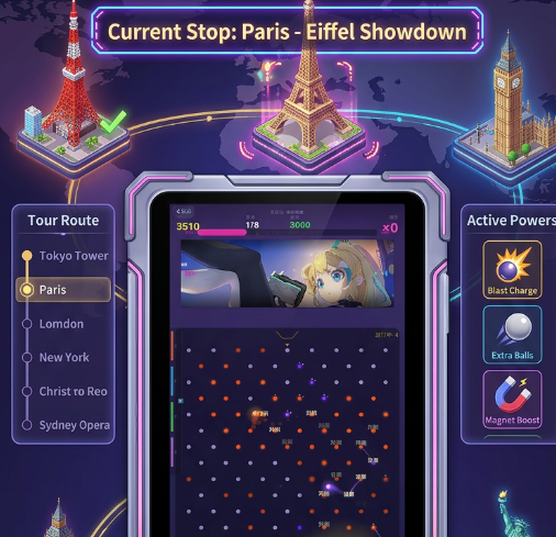 世界巡演主线还会贯穿前程,会有六大国际城市舞台等待着大家解锁。每一个场景都有专属的曲风以及视觉设计,可以让大家沉浸式的感受跨国演出的魅力。随着巡演推,人气也会不断的飙升,你就可以解锁很多的养成内容,还能够解锁全新的舞台动作,打造一个完全不一样的偶像形象。除了节奏闯关之外,游戏还会融入卡牌收集以及养成玩法,可以帮助你打造专属的演出阵容,然后获得积分。
