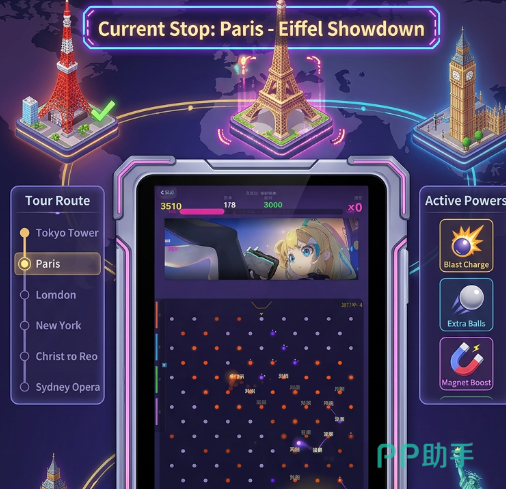 除了关注以上的链接之外,玩家也可以锁定豌豆荚平台。游戏的核心玩法还是比较简单的,很容易上手。需要滑动屏幕就可以调整弹珠发射的角度,瞄准节奏节点,然后去打出精准的碰撞,触发一个华丽的舞台特效。弹珠每一次弹跳撞击全部都会和音乐节拍深度绑定,连接的越高,那么舞台灯光也就更加的绚丽。难度梯度的设计是比较贴心的,新手可以循序渐进,大家都能够找到对应的乐趣。