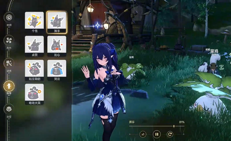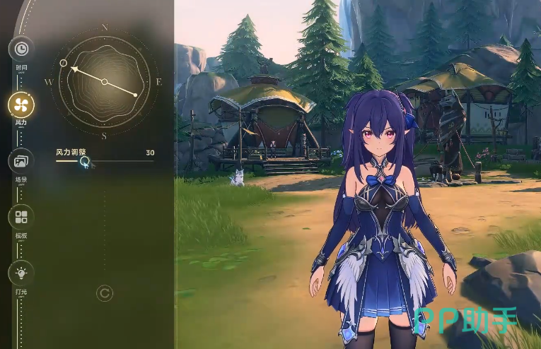 游戏里相机的使用非常简单,打开游戏之后,在左上角会有相机选项,点击相机,系统会自动切换成相机视角,游戏会直接在画面上出现一个模拟的相机,玩家可以在右侧调整拍照距离,左侧还会有大量其他的选项让玩家自由调整,可以通过调整时间,改变游戏里的昼夜,玩家不需要再等到系统昼夜变换的时候才能拍照,遇到美景之后可以直接调整时间,让场景呈现出不同的景色,另外还可以调整风力,风力变大之后,游戏里的景色呈现会更动态,角色的发型,服装会随风摇摆。