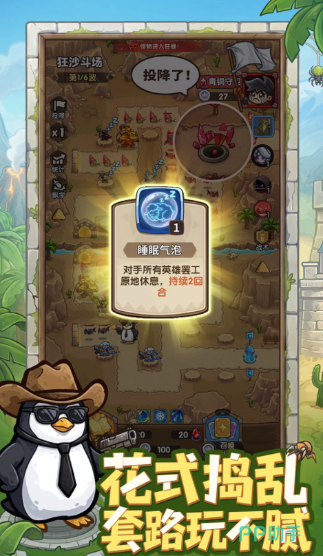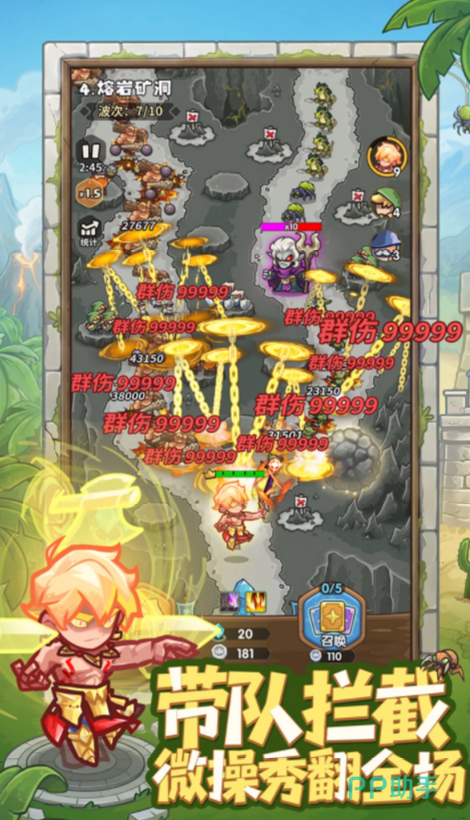 《王国大作战:前线》是一款融合塔防、即时策略与Roguelike元素的创新型手游。区别于传统静态布防模式,本作以“动态合成+实时指挥”为核心机制,玩家需在怪物进攻过程中,灵活召唤、升级并组合不同英雄单位,通过即时决策应对瞬息万变的战局。卡通手绘风格的画面搭配高自由度的策略构建体系,既保留塔防游戏的深度思考乐趣,又注入快节奏割草式爽感。