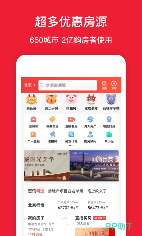覆盖面很广的房产服务软件,租房只是其核心板块之一,适合需求比较多样的租客。这款软件相当于综合性的房产超市,房源覆盖城市范围广,从平价合租单间、刚需整租套房,到配套完善的公寓房源应有尽有。软件筛选条件十分细致,可以按照预算、地理位置、周边配套等多个维度筛选房源,还支持线上直播看房,能够直观了解房屋环境和周边设施,兼顾租房、了解片区房价的双重需求。