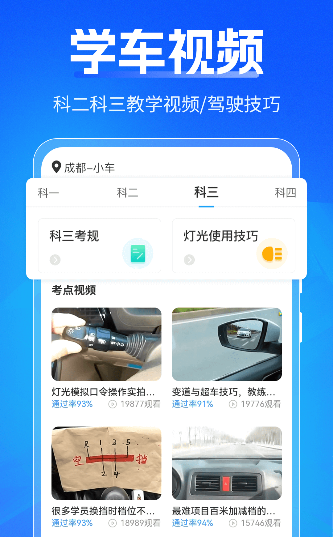 主打轻量化、易上手的学车体验,很适合备考时间紧张、害怕复杂操作的学车人群。这款软件精简了繁杂的功能模块,侧重驾考核心考点,理论题目分类清晰,每道考题都搭配通俗易懂的文字解析和技巧总结。它的模拟考试系统完全对标正式考场规则,如同全真模拟的考场复刻,学员可以反复自测刷题,精准汇总错题,针对性补齐知识短板。