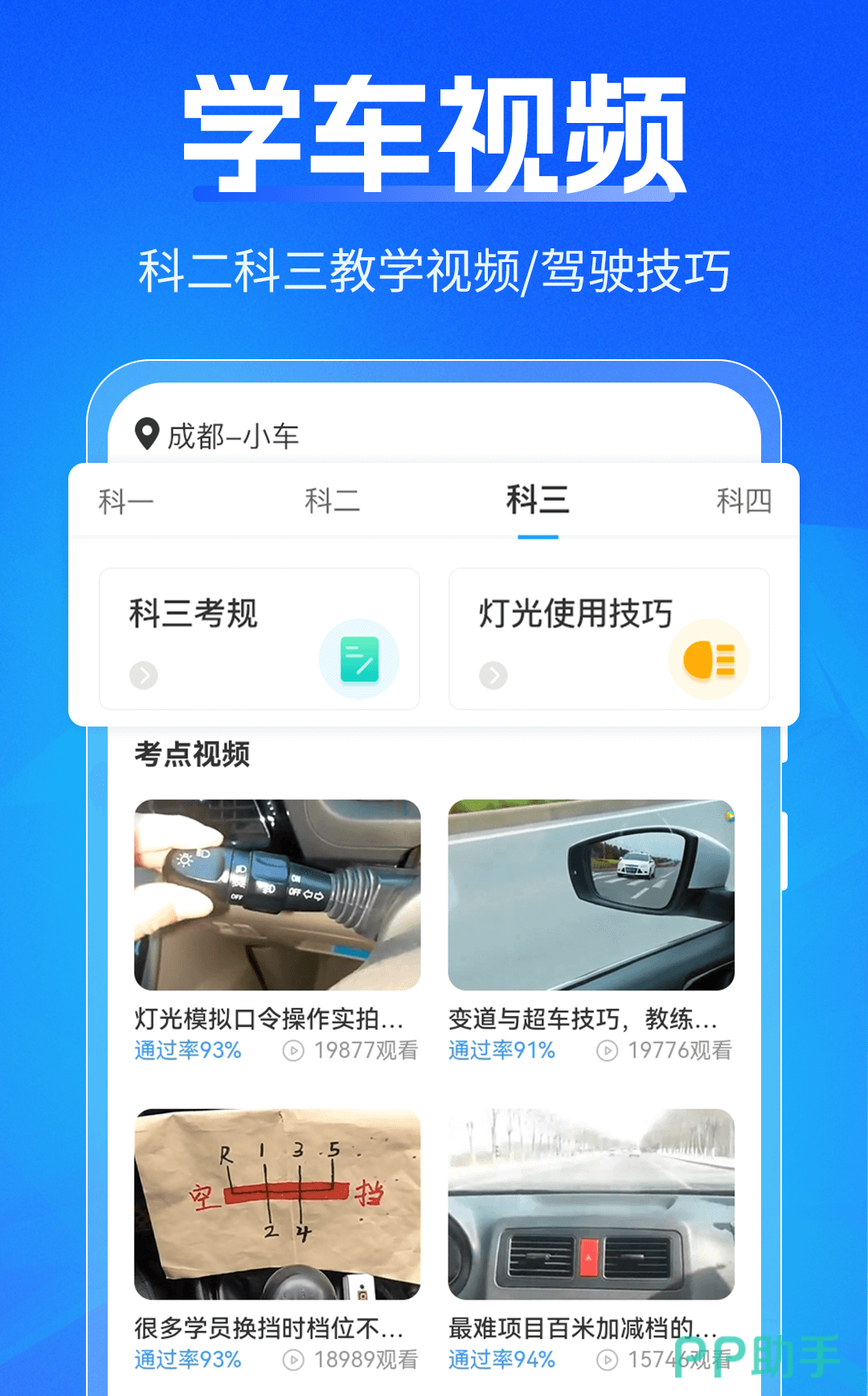 综合性极强的免费驾考辅助软件,兼顾理论刷题和实操模拟,面向学车全阶段人群。软件收纳了全国通用考题和各省市专项考题,题库覆盖面齐全。实操模拟板块还原真实车辆操控手感和考场环境,能够帮助学员建立车辆空间感知能力。除此之外,软件内置海量免费教学短视频,主攻考试易错点、扣分点,精准击破学车难点。