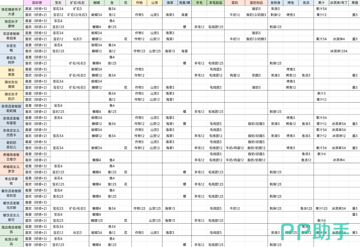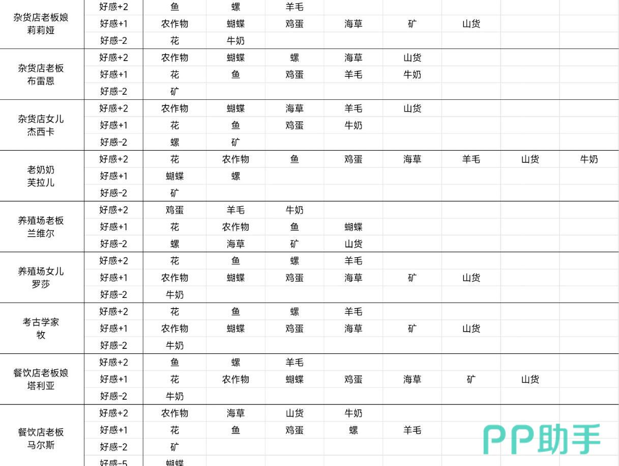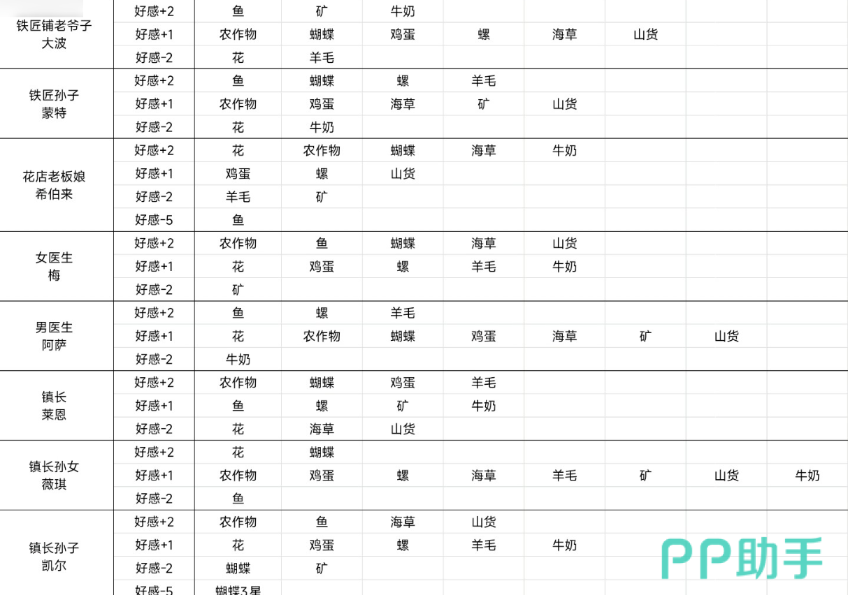 随着农场经营步入正轨,材料储备日益丰富,玩家应逐步转向“精准送礼”阶段。游戏中NPC好感度增长存在明显分级机制:普通礼物加1点,偏好类礼物加2点,而专属喜好物品则可一次性提升3点。这意味着一次正确选择,效果相当于前期三次常规赠送。为降低记忆负担,建议聚焦几类高频规律——例如铁匠及其家人偏爱宝石、高星鱼类与奶制品;花店店主对蝴蝶标本、高星作物及山货类特产反应尤为积极。掌握这些核心偏好,即可大幅提升互动效率。