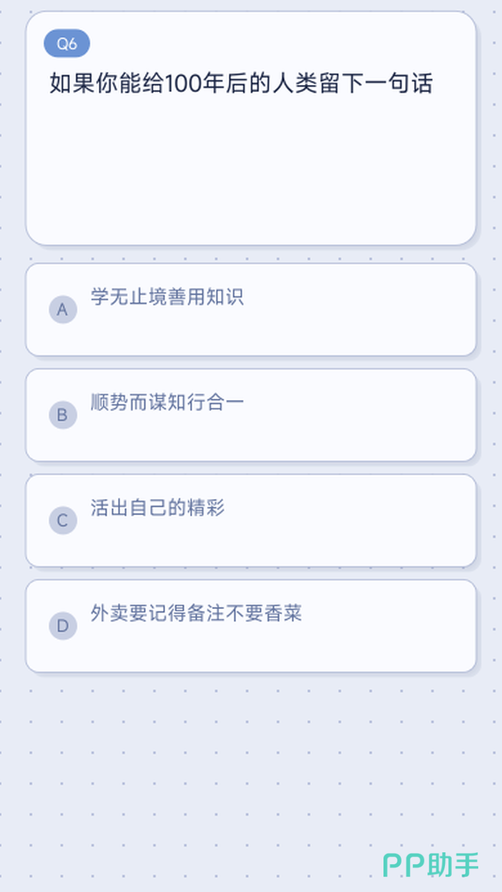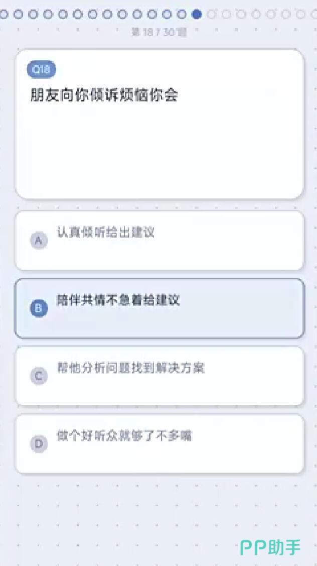 作答过程中无需反复斟酌标准答案——每道题均模拟日常情境,例如“面对突发变故你会优先考虑什么?”“更倾向独处思考还是群体协作?”“对规则与变通持何种态度?”等。建议完全遵从直觉反应,避免理性权衡,确保结果反映真实倾向。完整答题流程稳定控制在4–6分钟之间,节奏轻快无压力。