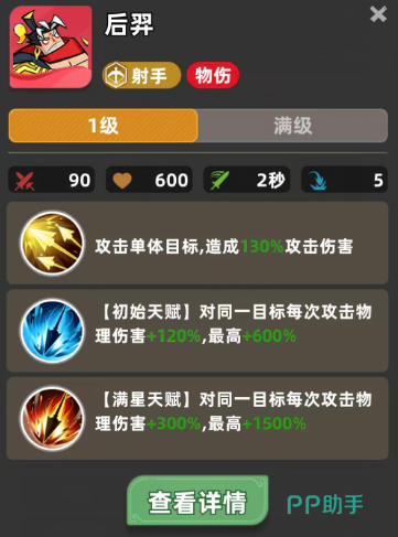 这个角色在游戏前期通过段位达到快速入手的同时,就要熟悉他的各种被动技能效果,因为具备了一定的伤害特性,可以快速叠加起来,那么后期参与副本,在进行推图的时候,其实是有很多的输出功能可以使用出来的,就算在各种强势对战的过程当中,持续输出的效果也是比较稳定的,如果要组成射手流派的话,后羿绝对是其中最核心的输出角色,而且后期他满星天赋达成的情况下,对同一个目标进行输出,最高的情况下百分比是可以达到1500的百分比,所以在这里他能够达成的这样的数值,在游戏当中是基本其他射手都达不到的,所以在目前的核心输出点当中,后羿也是射手流派最具备强度的核心输出。