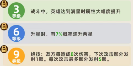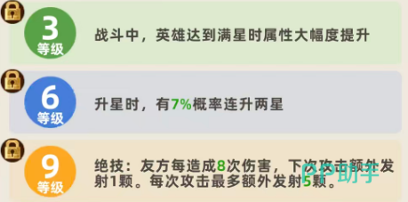 后期再满星天赋的强化当中,附带的是目标8%最大生命数值的真实伤害,同样也不超过孙尚香攻击能力当中的160%,最后在绝技的提升效果当中,就要把她升级到15级,此时在绝技效果当中,孙尚香发射出去的炮弹,在基础的伤害量当中就变成了攻击能力百分百的真实伤害,此时带来的百分比也是一个非常高的数值,且给对面带去的真实伤害会根据她等级不断的提升,以及升星各种方式的累积变得非常强大,所以在后期的射手阵容里面,孙尚香带来的输出也是非常好用的,就是在攻速上面,大家看给孙尚香通过什么样的方式进行提升。