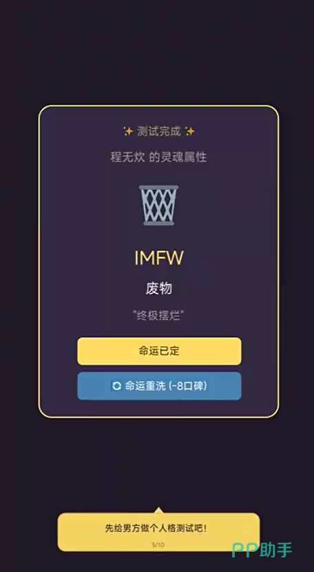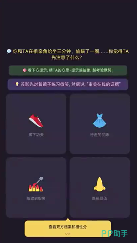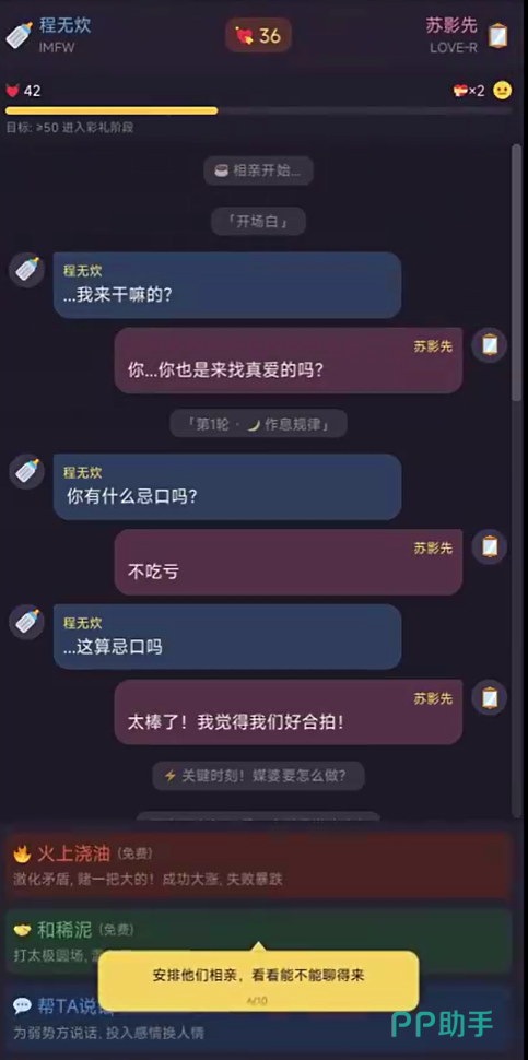 开局阶段,系统会开放角色档案库。每份档案包含基础信息(如职业、年龄、兴趣)、语言特征(口头禅、常用句式)、行为轨迹(健身打卡记录、社交平台发言倾向)以及关键隐藏属性(例如“表情包依赖指数”“线下社交启动阈值”)。配对时,系统实时生成相性分——该数值为0–100区间量化指标,反映初始适配潜力,但并非决定性依据。高分组合未必稳定,低分组合亦可能因特定事件触发情感跃迁,考验玩家对人物内核的把握能力。