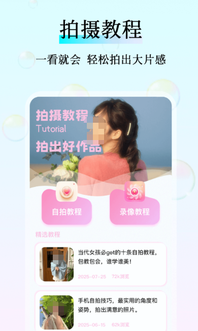 甜梦相机,走的是温柔治愈风,风格软糯又清新,很适合喜欢可爱、少女风拍照的人群。整体设计简约温柔,操作逻辑简单,就算是第一次用,也能快速摸索明白。内置海量甜美滤镜、柔光特效、氛围光斑,自带自带柔光磨皮效果,夜晚拍照也能弱化噪点,画面柔和又细腻。除了日常人像拍摄,拍美食、鲜花、小物件这类氛围感静物也很合适,随手一拍都是温柔满满的日常碎片,很适合用来记录生活小美好。