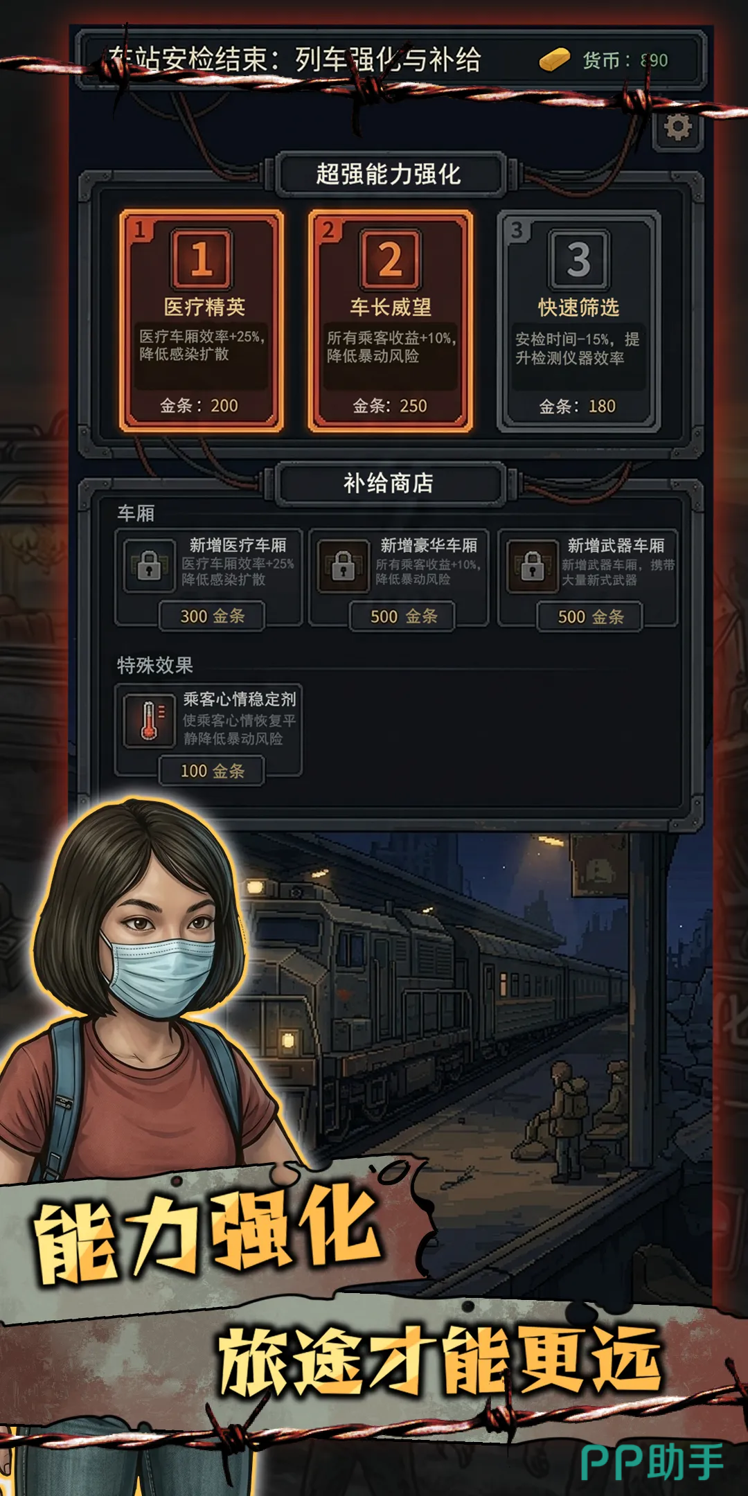 空间有限,物资告急。玩家需在有限载员上限下,权衡伤员救治优先级、岗位技能匹配度与人员可信度,动态调整车厢功能区布局。招募工程师可强化列车动力系统,配备医生能提升医疗舱救治效率,而治安官则有助于稳定车厢秩序与士气值。人员配置并非静态,而是随旅程推进持续演化的生存策略核心。
