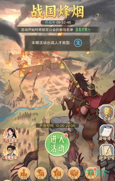 “战国烽烟”为限时3日的周期性活动,每日开放时段为上午10:00至晚上22:00。活动采用自动锁定机制:公会确认报名后,成员名单即刻冻结,报名期结束后未完成登记的公会将无法参战。未获资格的玩家仍可参与阵营竞猜,提升社区互动性。每次活动开启前,系统将预设当期出战职业类型,对应角色的总能力值将按比例转化为战场基础战力,确保公平性与策略适配度。