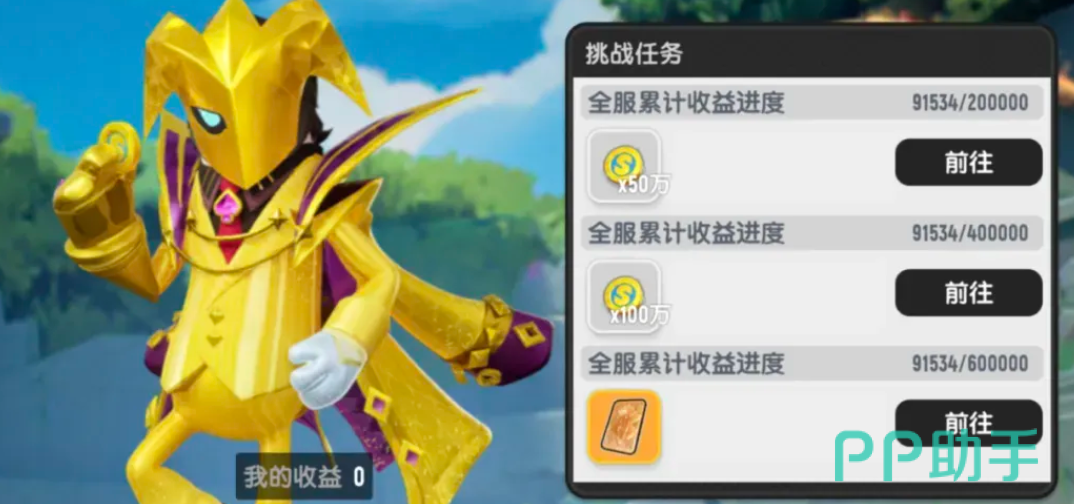活动周期为4月24日至6月25日。在活动期间,所有玩家完成摸金派对任务所获得的收益,将实时汇入全服累计进度条。当进度达到预设阈值后,“围攻至尊小丑”挑战即刻开放。成功通关后,全服玩家均可领取肠宝币、围攻系列专属奖励等丰厚道具。