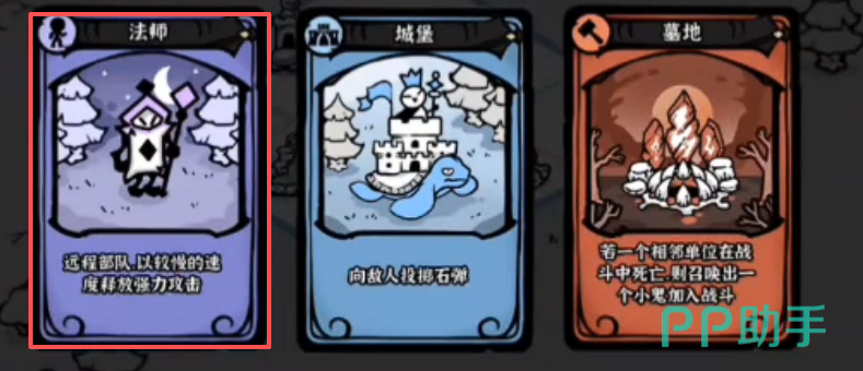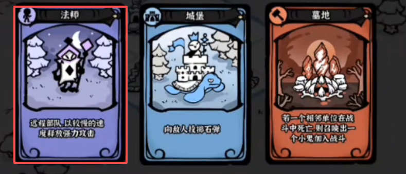 第三个就是紫色品质的法师,职业卡牌法师目前其实也是用作远程效果的,但是他因为自身品质是比弓箭手要高一些,所以这里如果用到法师进行输出的话,带来的攻击能力会比蓝色品质的卡牌输出要强一些,缺点就是走路的速度还是比较慢的,因为没有达到最高的品质。接下来还有一个精灵,精灵这张卡牌其实很多玩家在刷新的时候都没有刷新出来,他目前也属于比较一类特殊的卡牌,目前的卡牌品质是绿色,在游戏当中也属于一类远程狙击的效果,而且在精准度上面是非常高的,攻击的时候总是找到最远的那个目标进行针对性的输出,所以在这里如果大家要打塔防,而正好对面部署的单位都比较远的情况下,上精灵这张卡是最适配的。